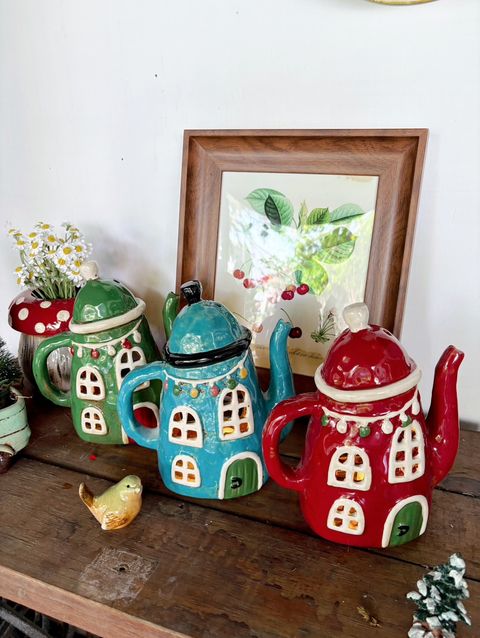 大茶壺丹麥屋(藍) 丹麥燭台小屋 陶瓷小屋