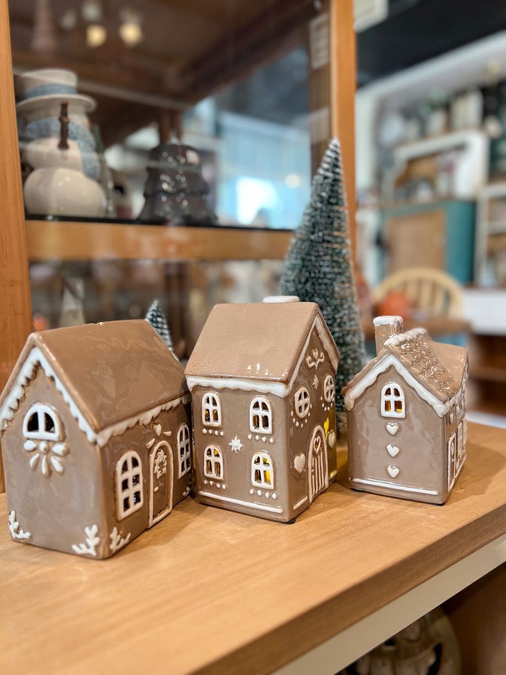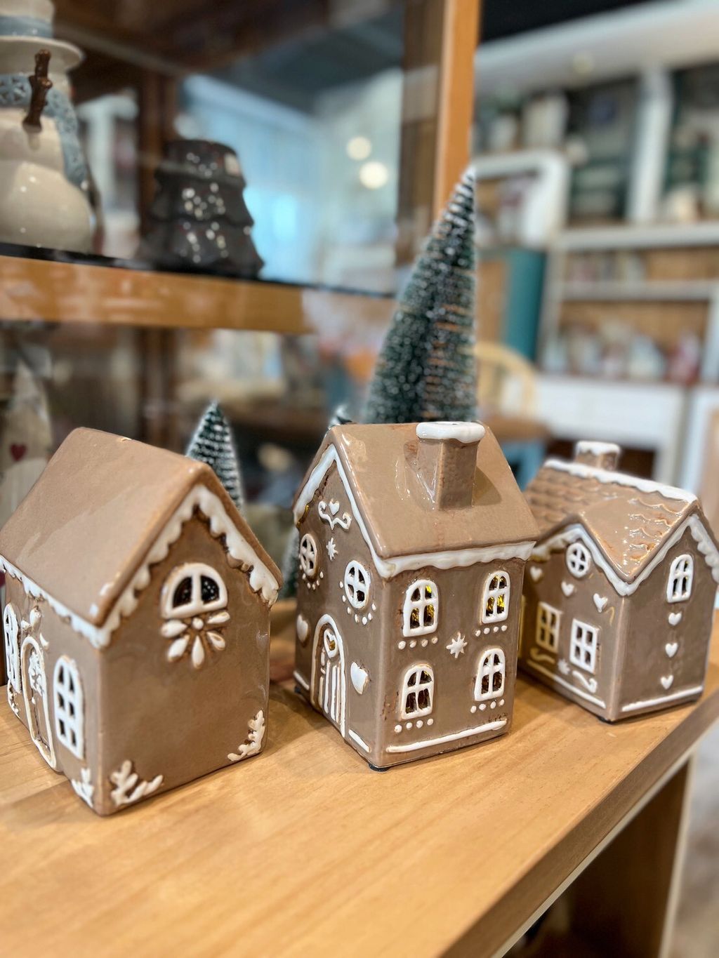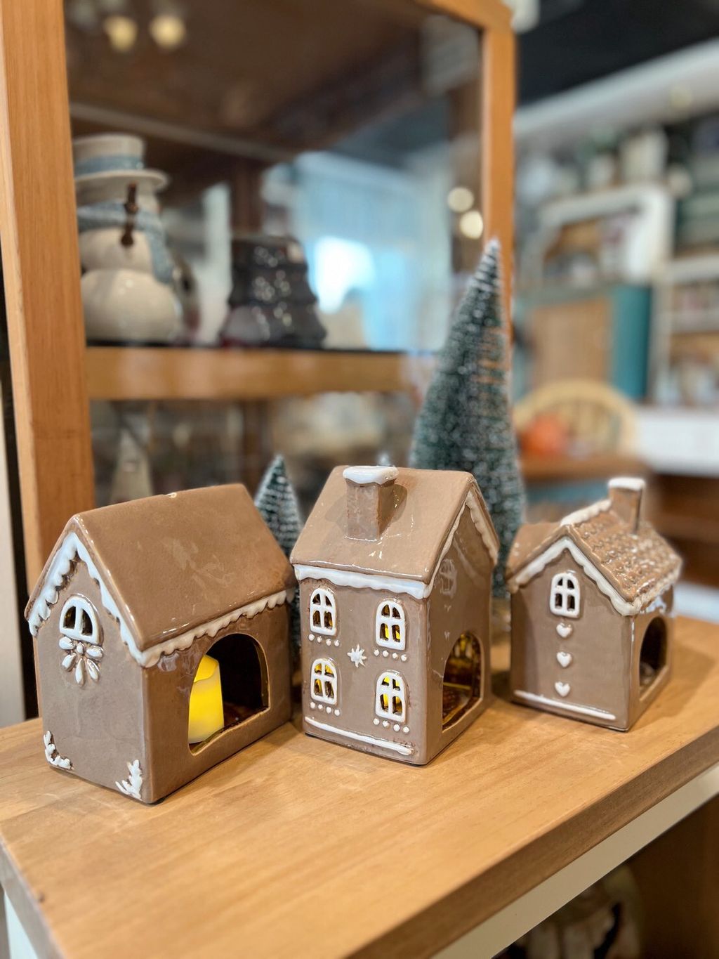 每款陶瓷房屋造型皆附贈電子蠟燭,夜晚點亮後彷彿一座微型溫暖小屋。