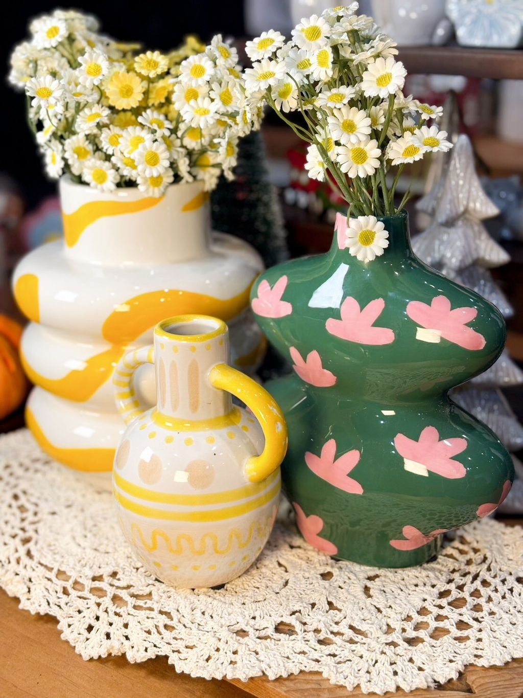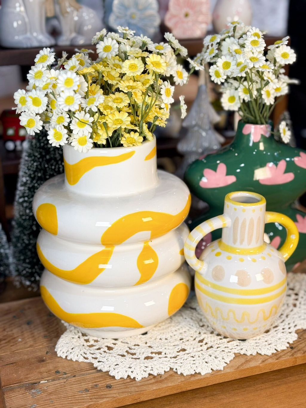 彩繪造型花瓶系列 黃色塗鴉花瓶/粉色小草圖案花瓶/花紋提把花瓶