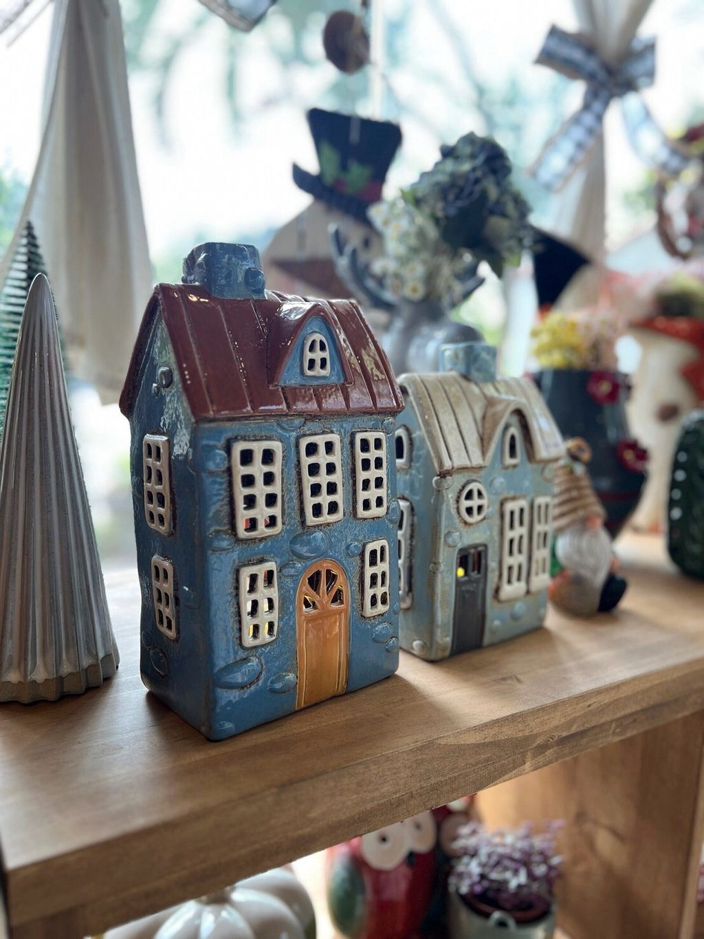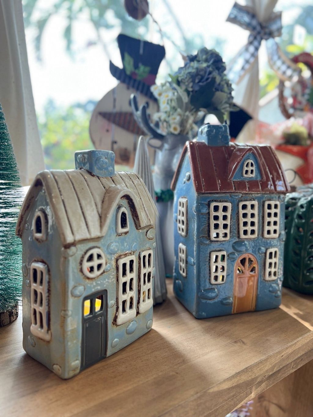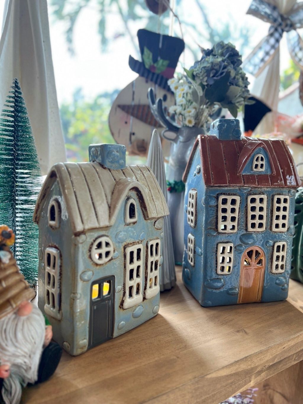 每款陶瓷房屋造型皆附贈電子蠟燭,夜晚點亮後彷彿一座微型溫暖小屋。