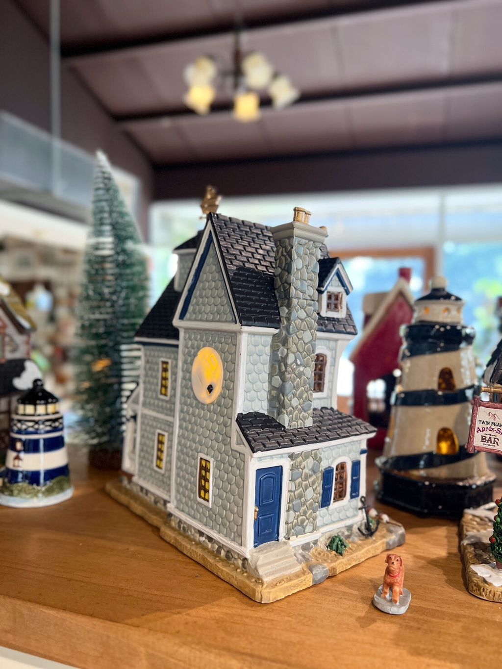 房屋美式小屋附底燈,推薦偶爾點燈的朋友(安裝鈕扣電池,沒電時可更換)