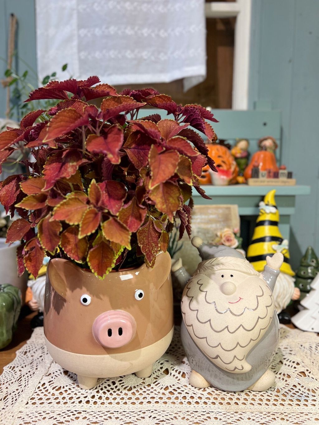 豬豬花盆/老公公擺飾