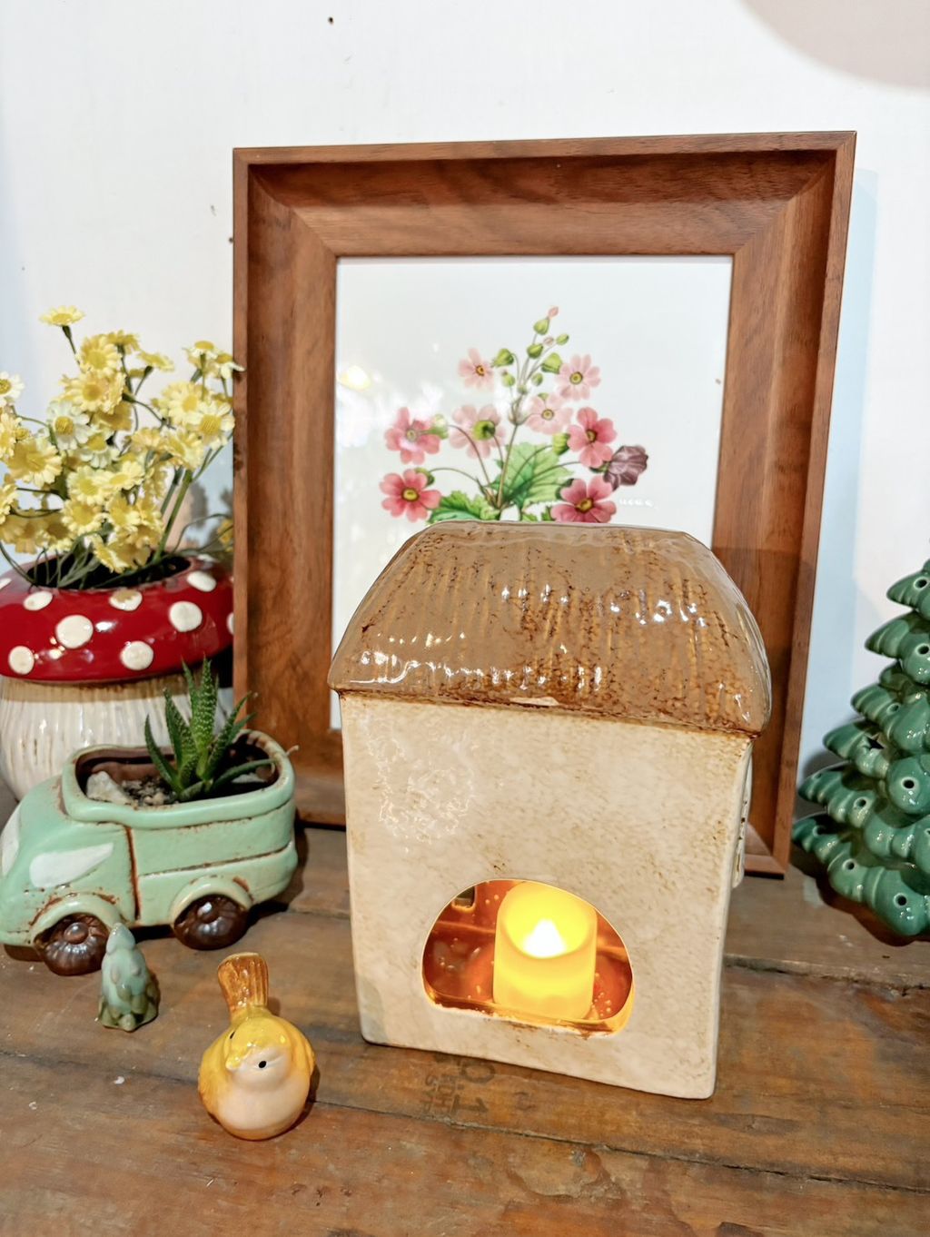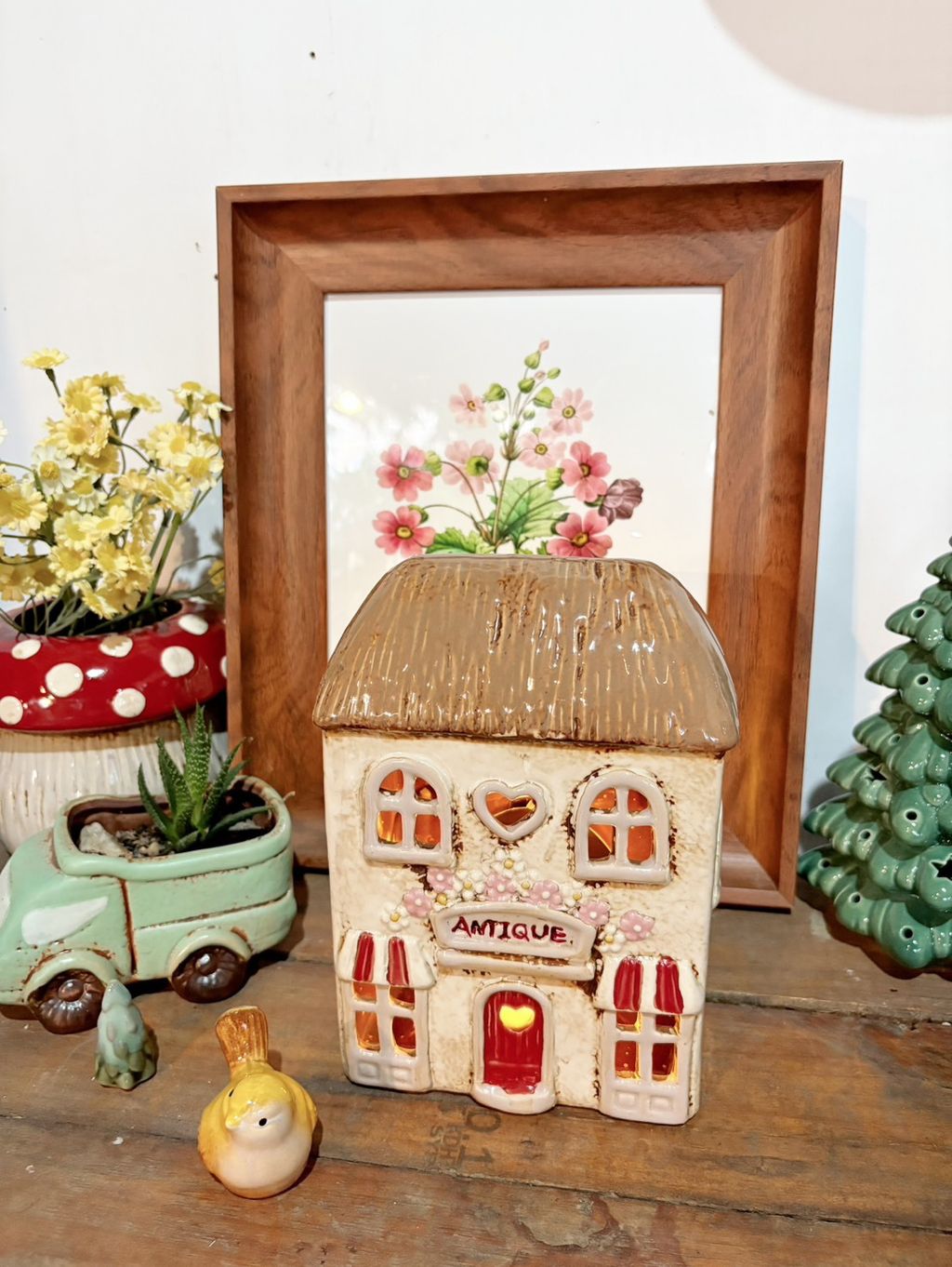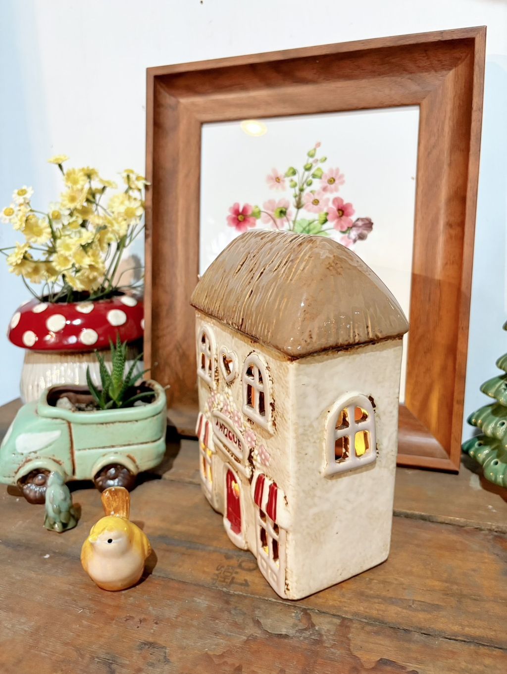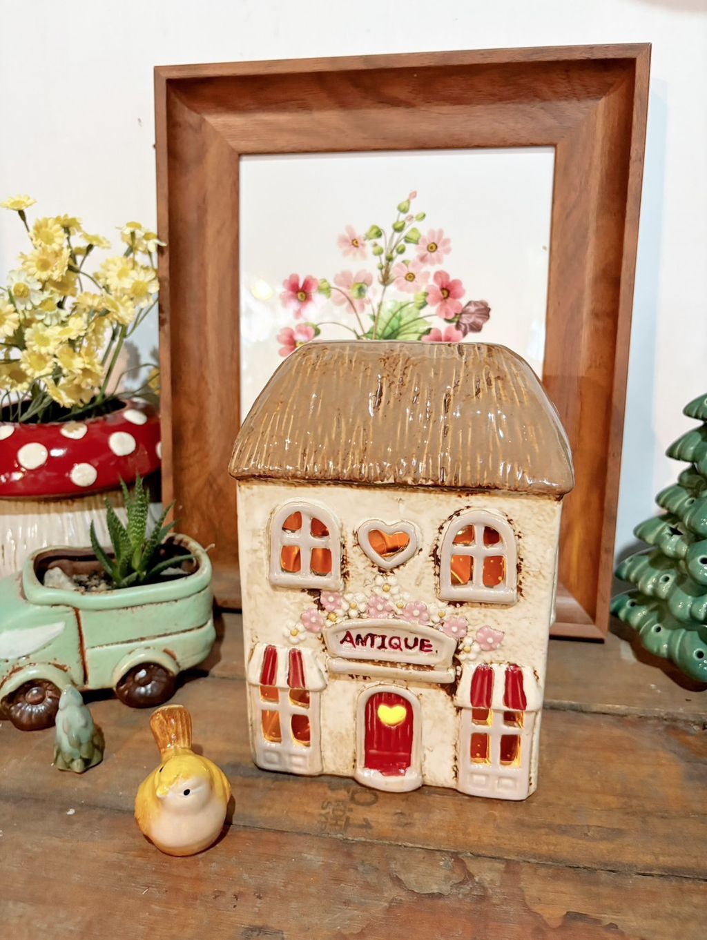Antique古董店花朵小屋 丹麥小屋燭台 園藝擺飾 陶瓷房屋