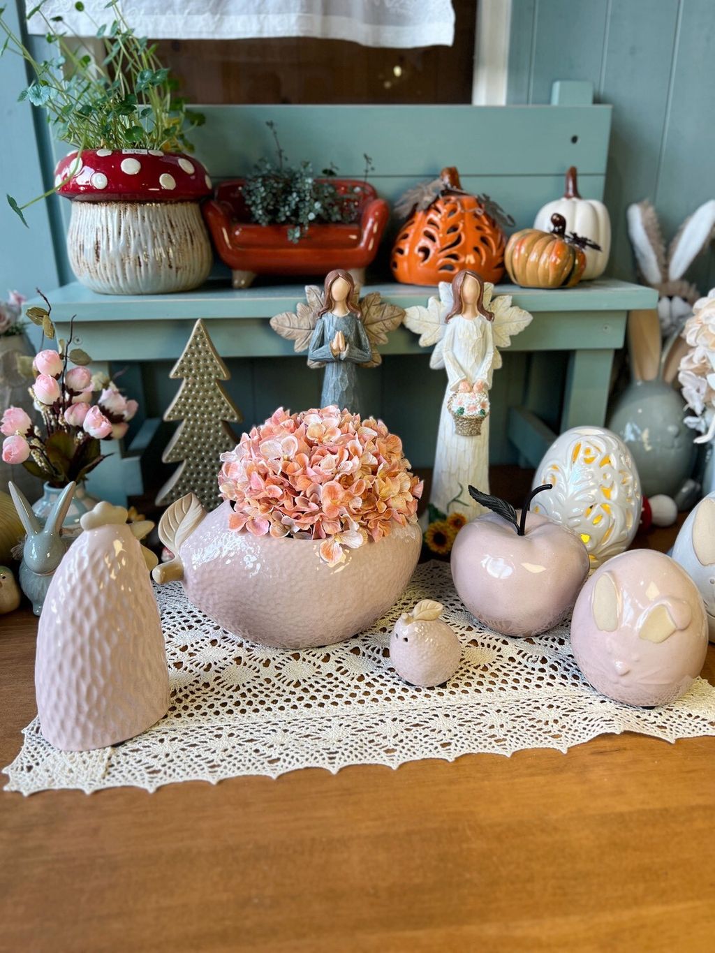 粉色粗陶系列(大檸檬盆/蘋果擺飾/公雞擺飾/檸檬擺飾/兔兔蛋擺飾)