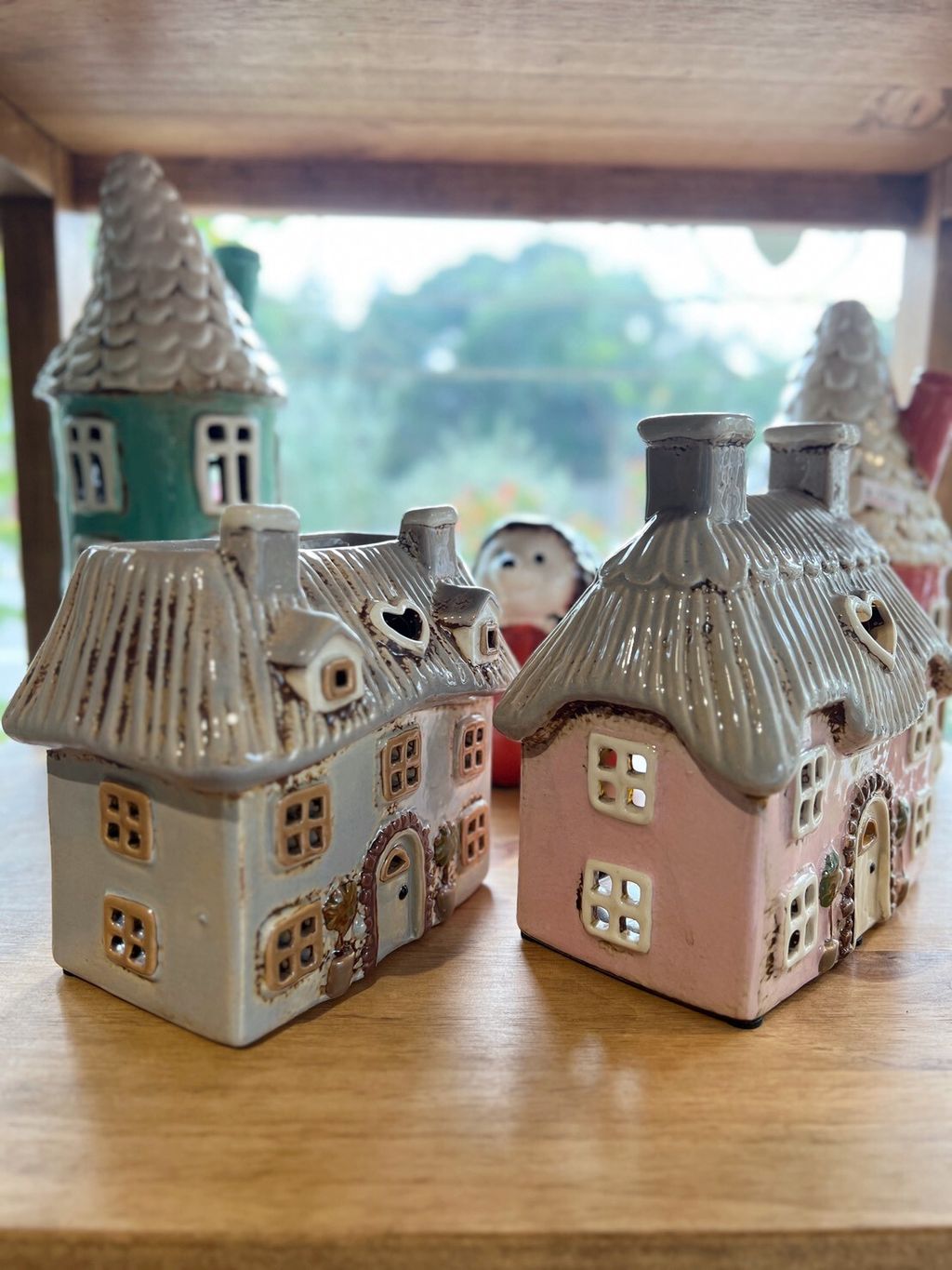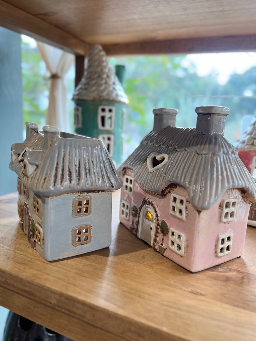 每款陶瓷房屋造型皆附贈電子蠟燭,夜晚點亮後彷彿一座微型溫暖小屋。