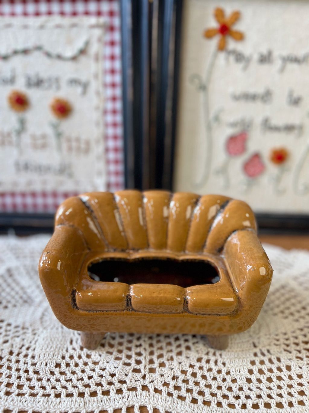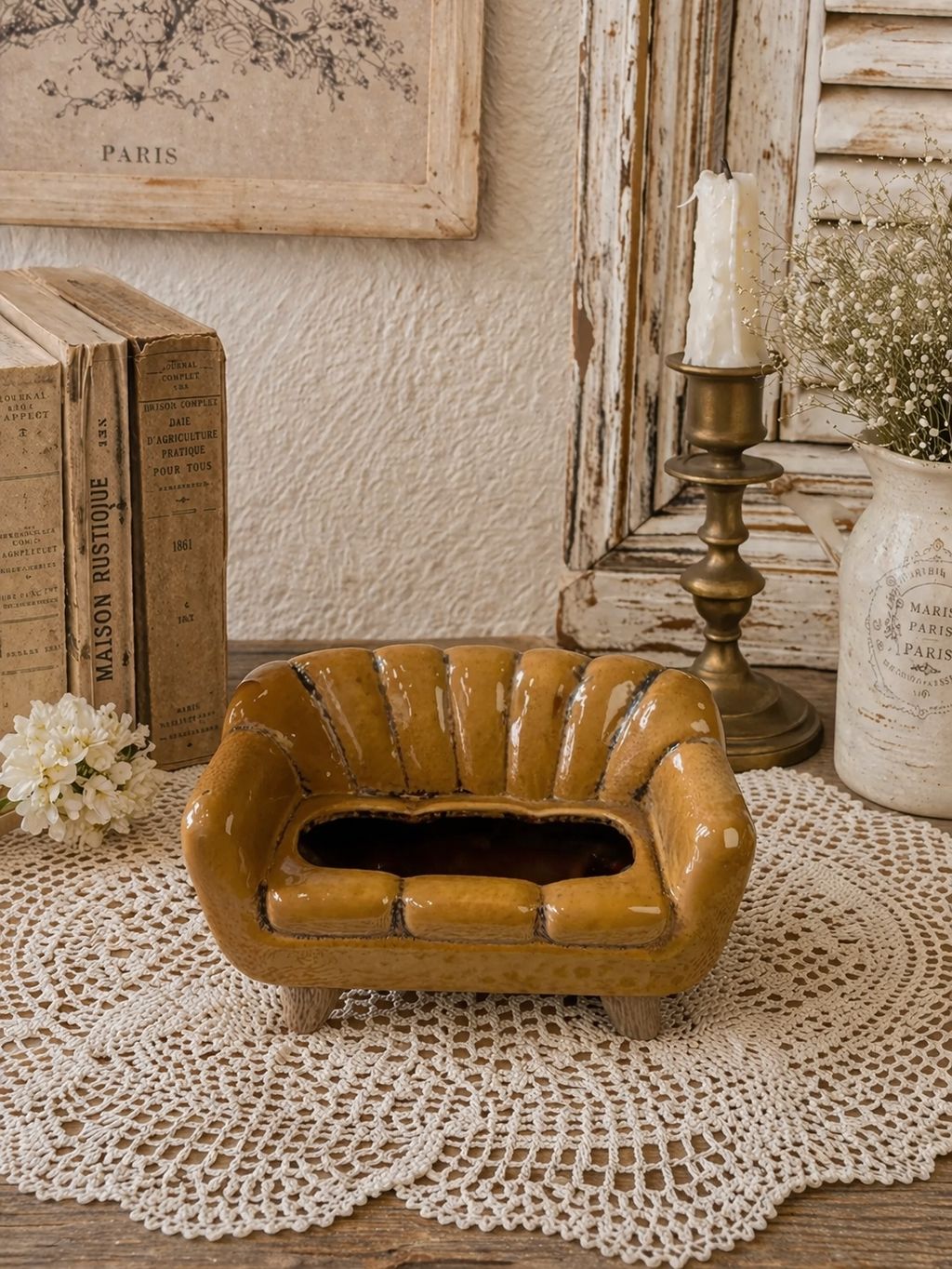 丹麥土黃沙發花器 丹麥小屋花器 陶瓷花器