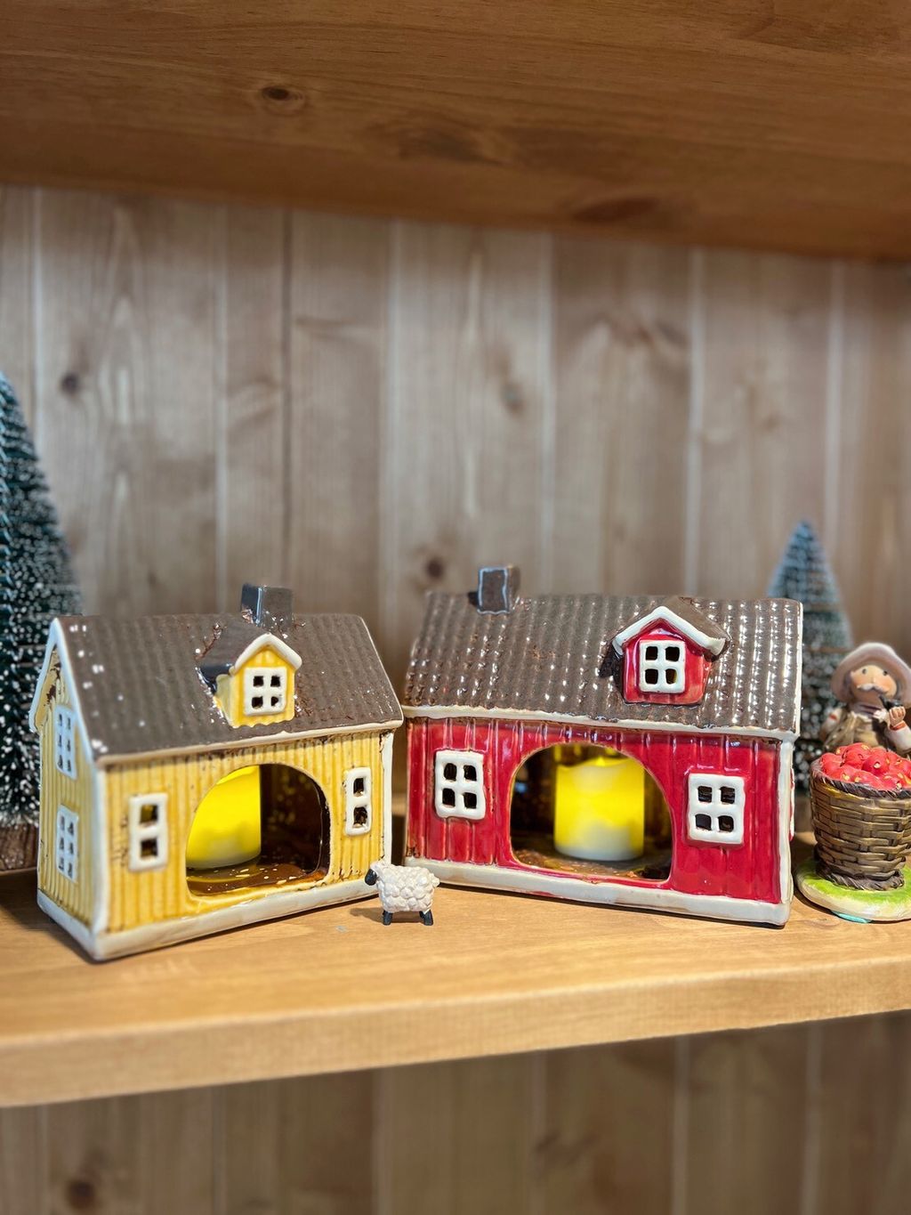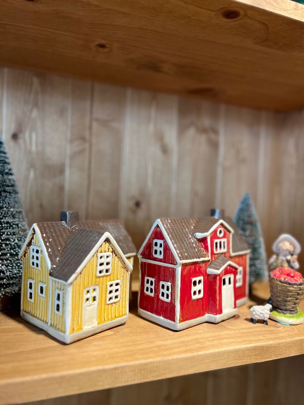 每款陶瓷房屋造型皆附贈電子蠟燭,夜晚點亮後彷彿一座微型溫暖小屋。