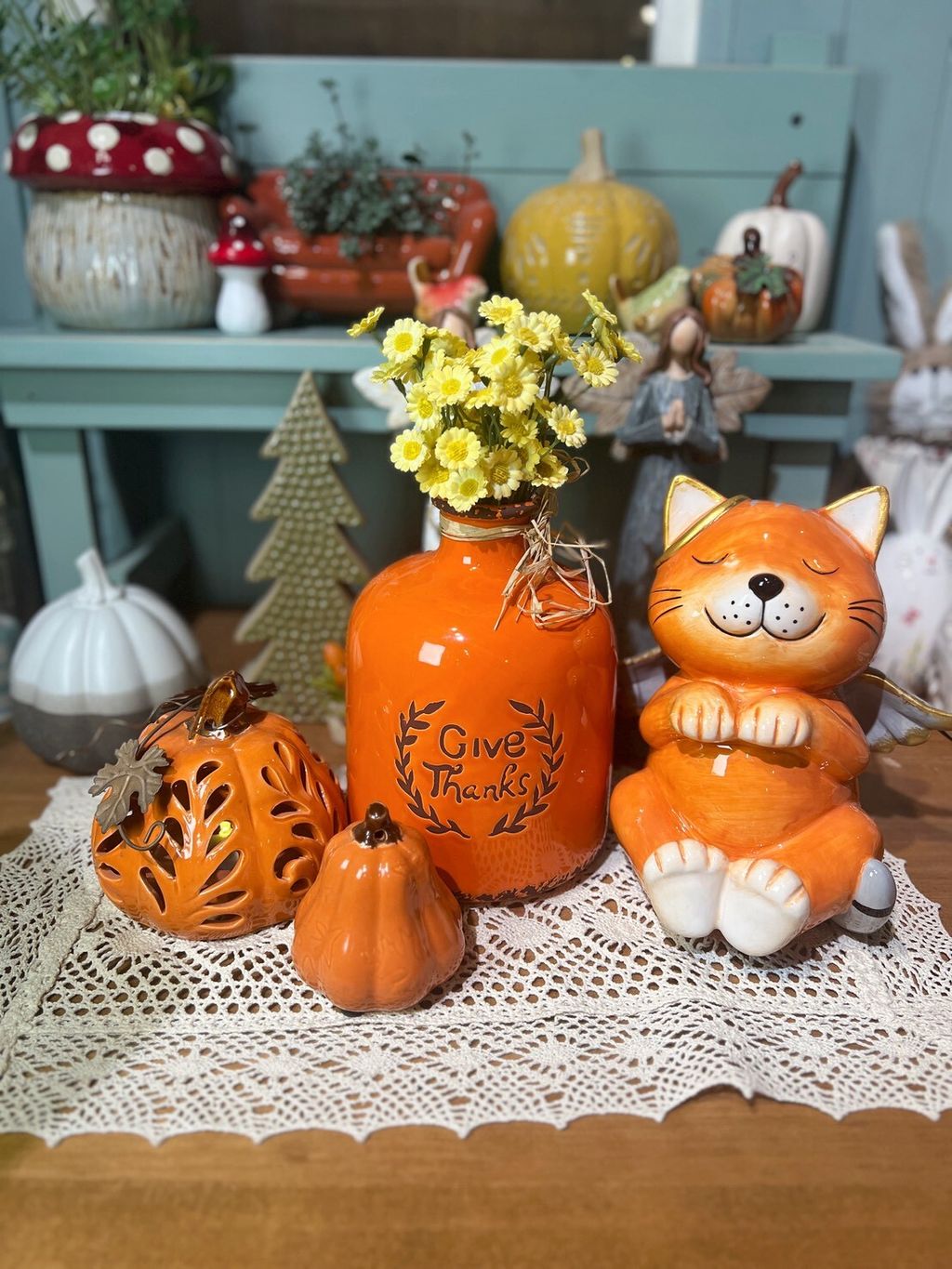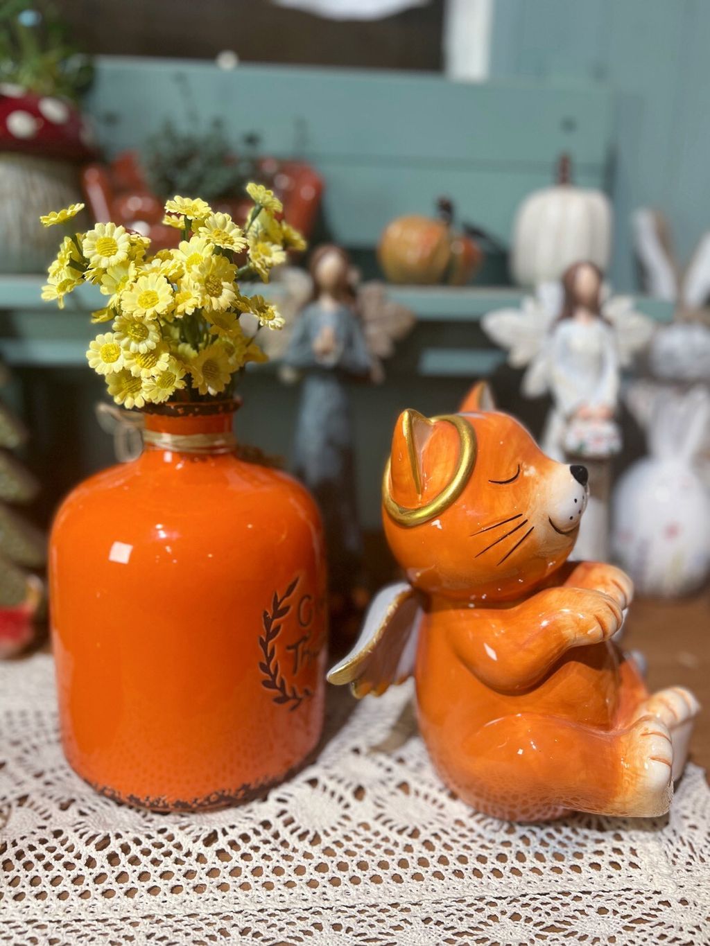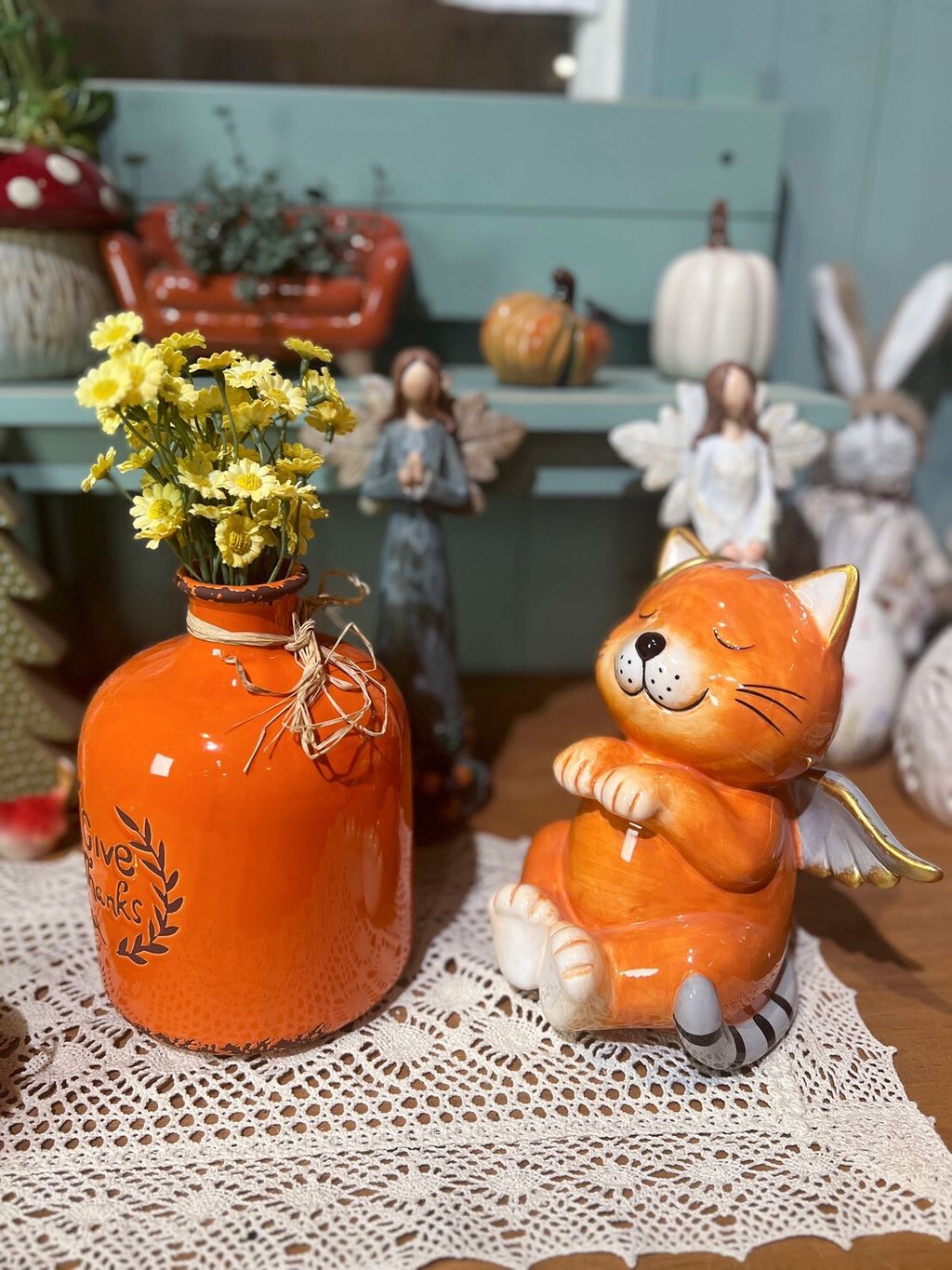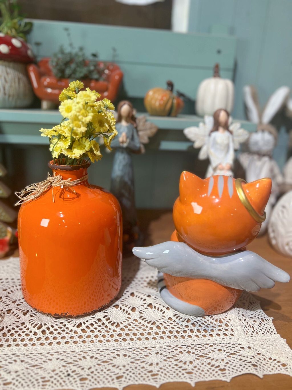 橘色仿舊花瓶/天使貓/鏤空南瓜燈/南瓜擺飾