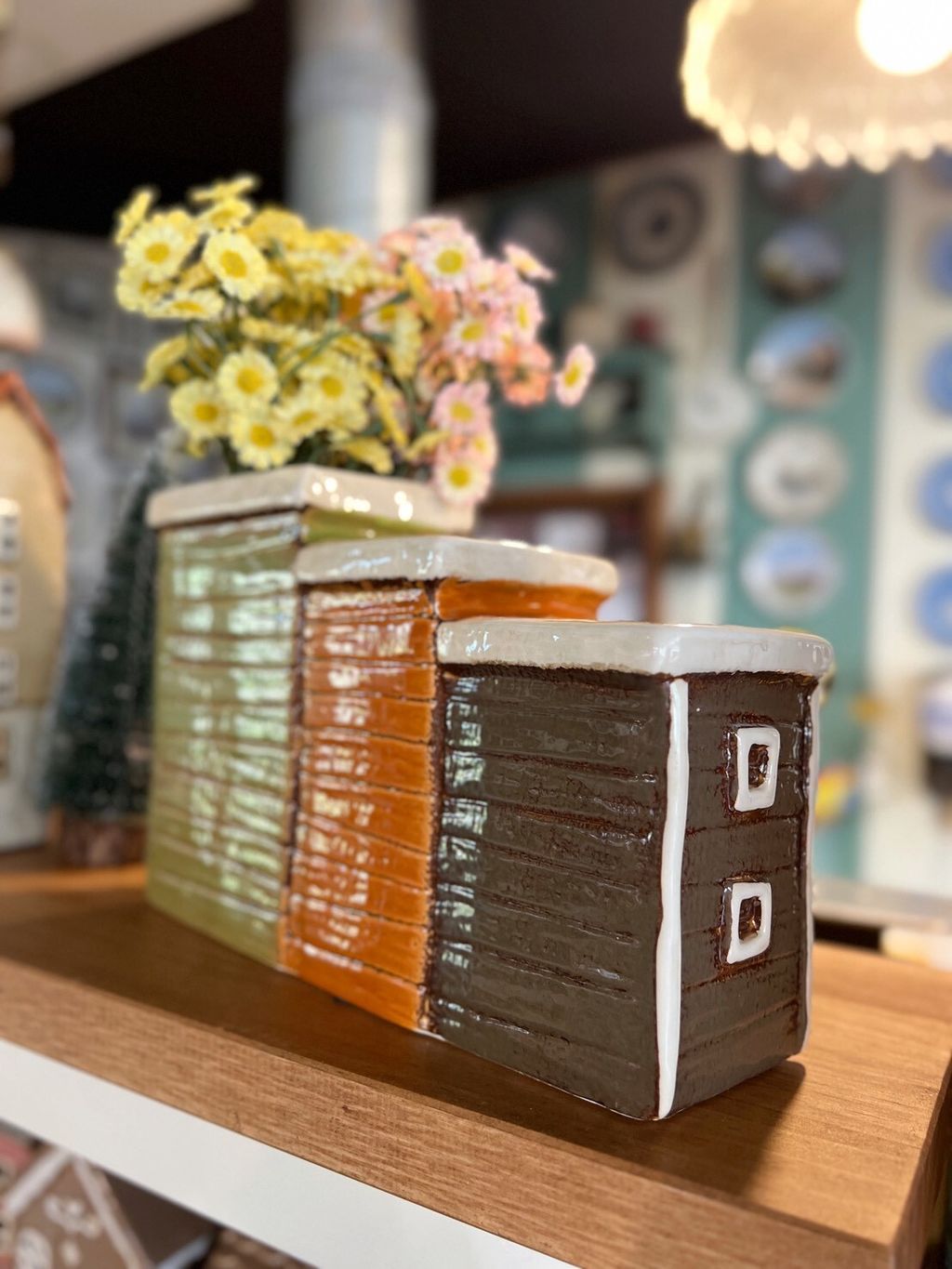 繽紛三連小屋花器 丹麥小屋花器 陶瓷花器