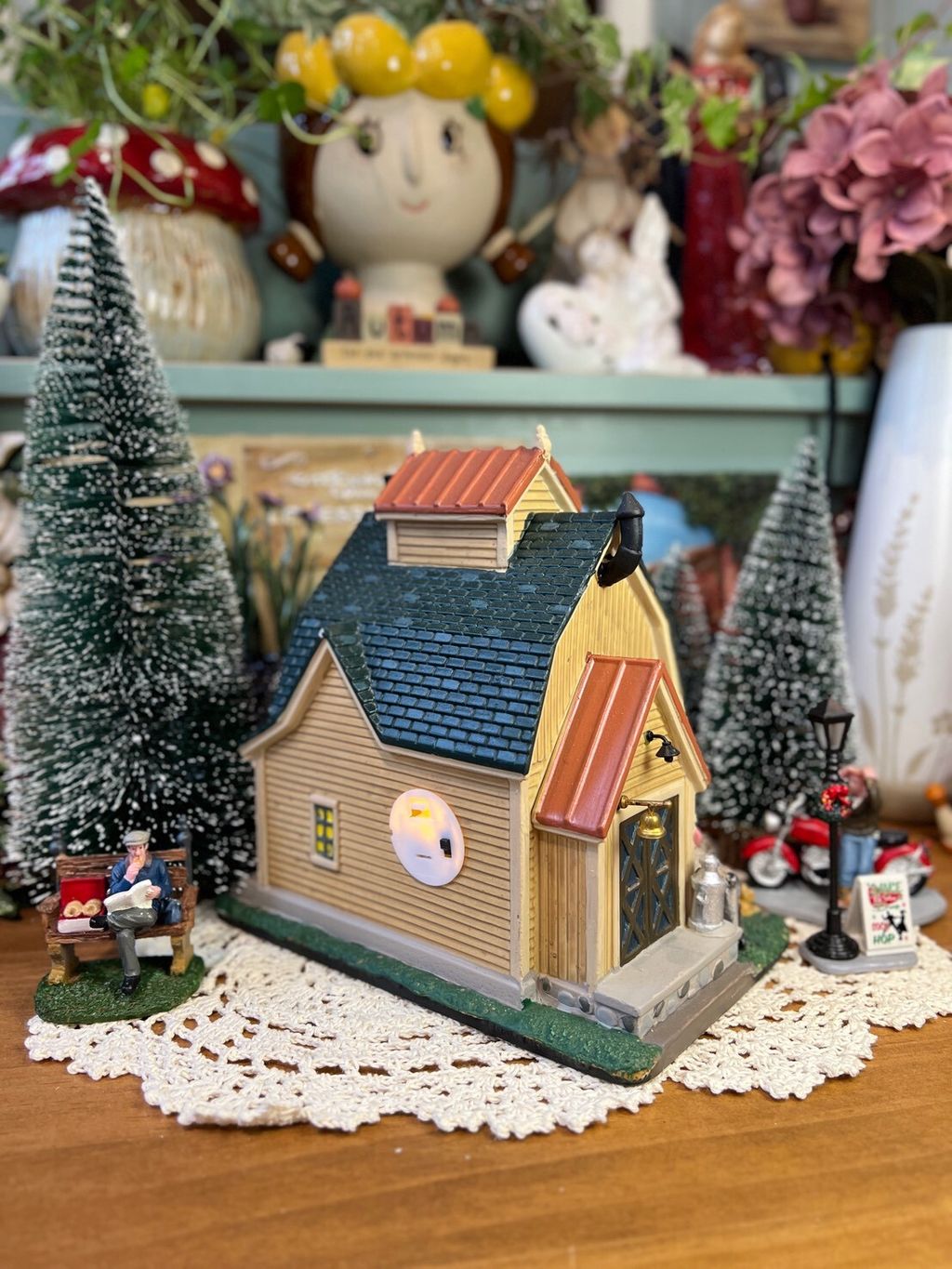房屋美式小屋附底燈,推薦偶爾點燈的朋友(安裝鈕扣電池,沒電時可更換)
