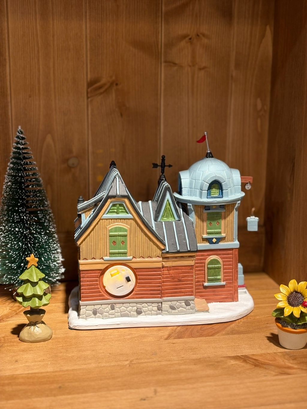 房屋美式小屋附底燈,推薦偶爾點燈的朋友(安裝鈕扣電池,沒電時可更換)