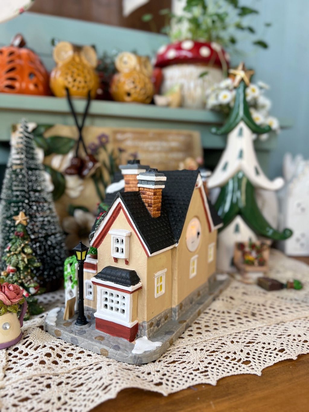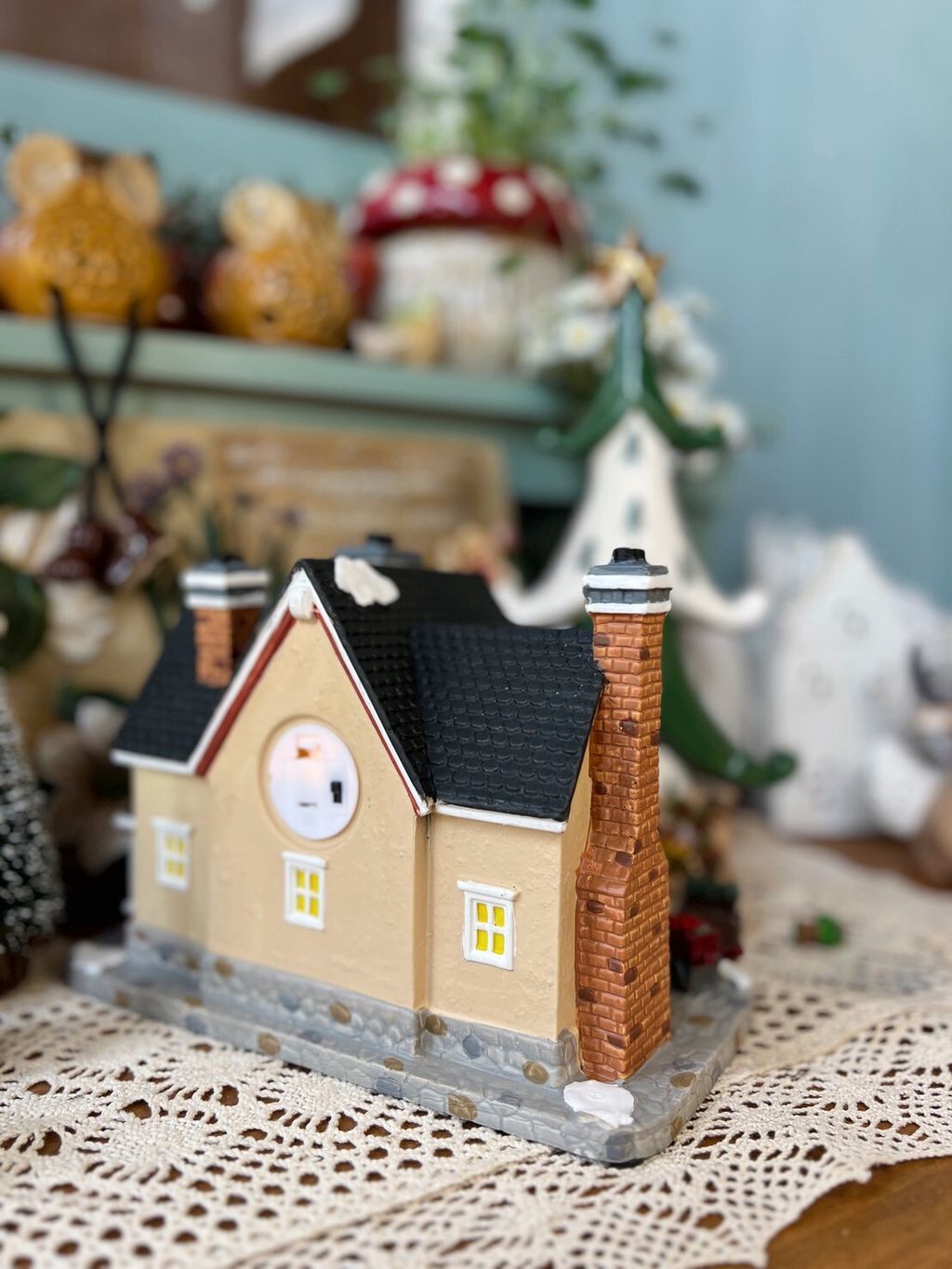 房屋美式小屋附底燈,推薦偶爾點燈的朋友(安裝鈕扣電池,沒電時可更換)