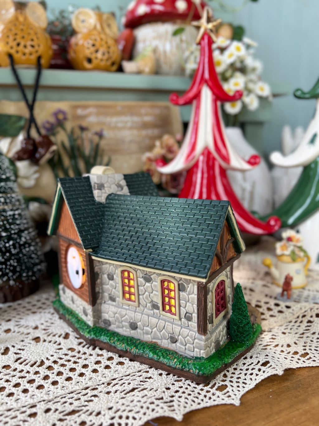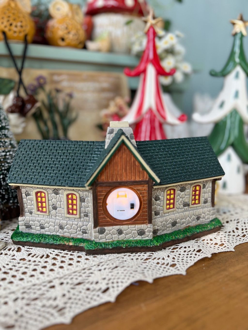 房屋美式小屋附底燈,推薦偶爾點燈的朋友(安裝鈕扣電池,沒電時可更換)