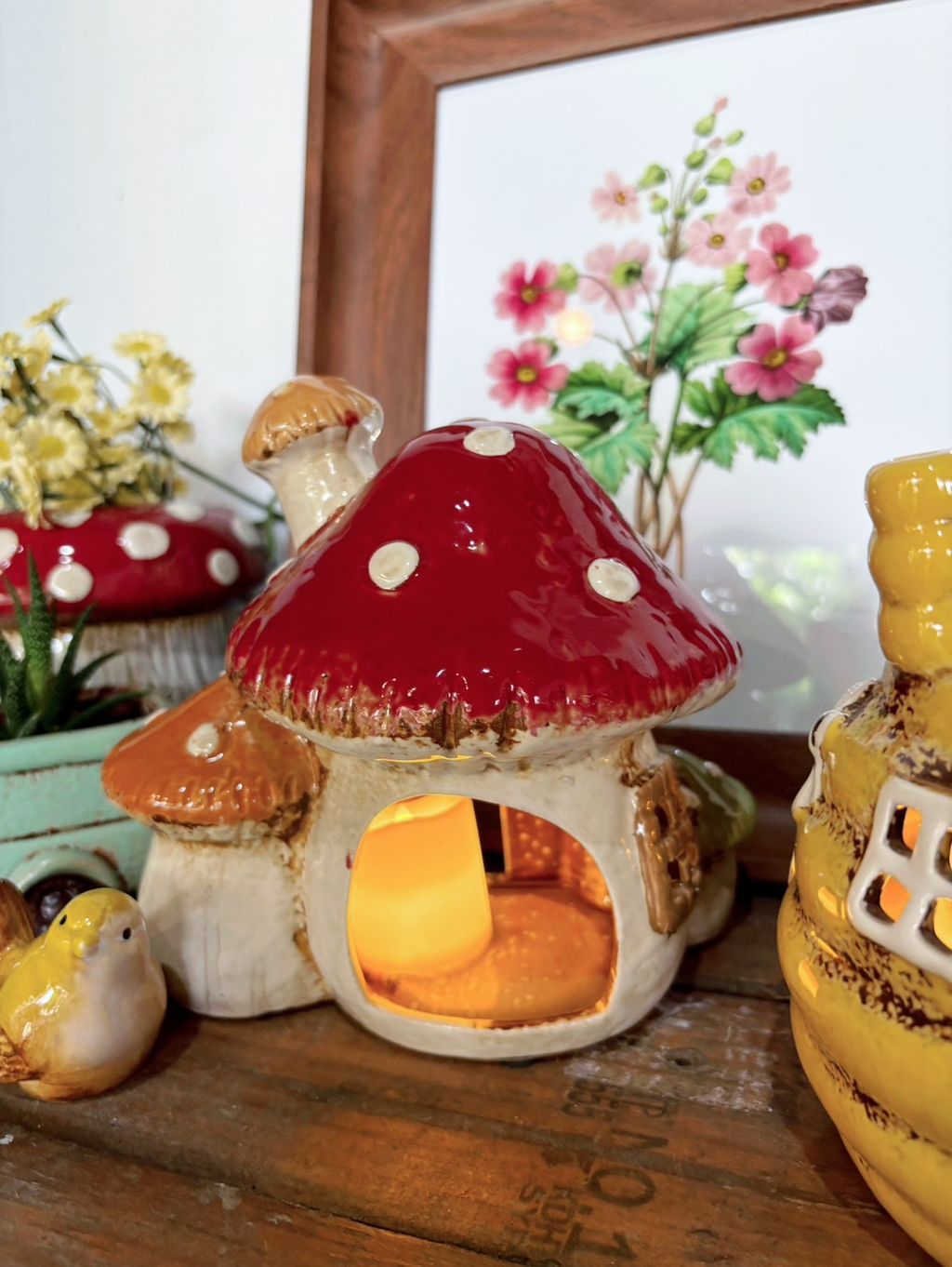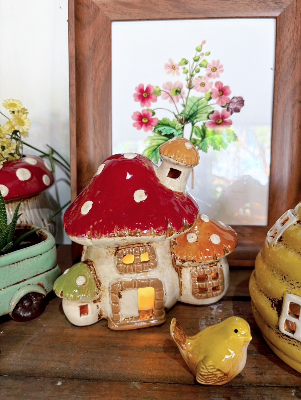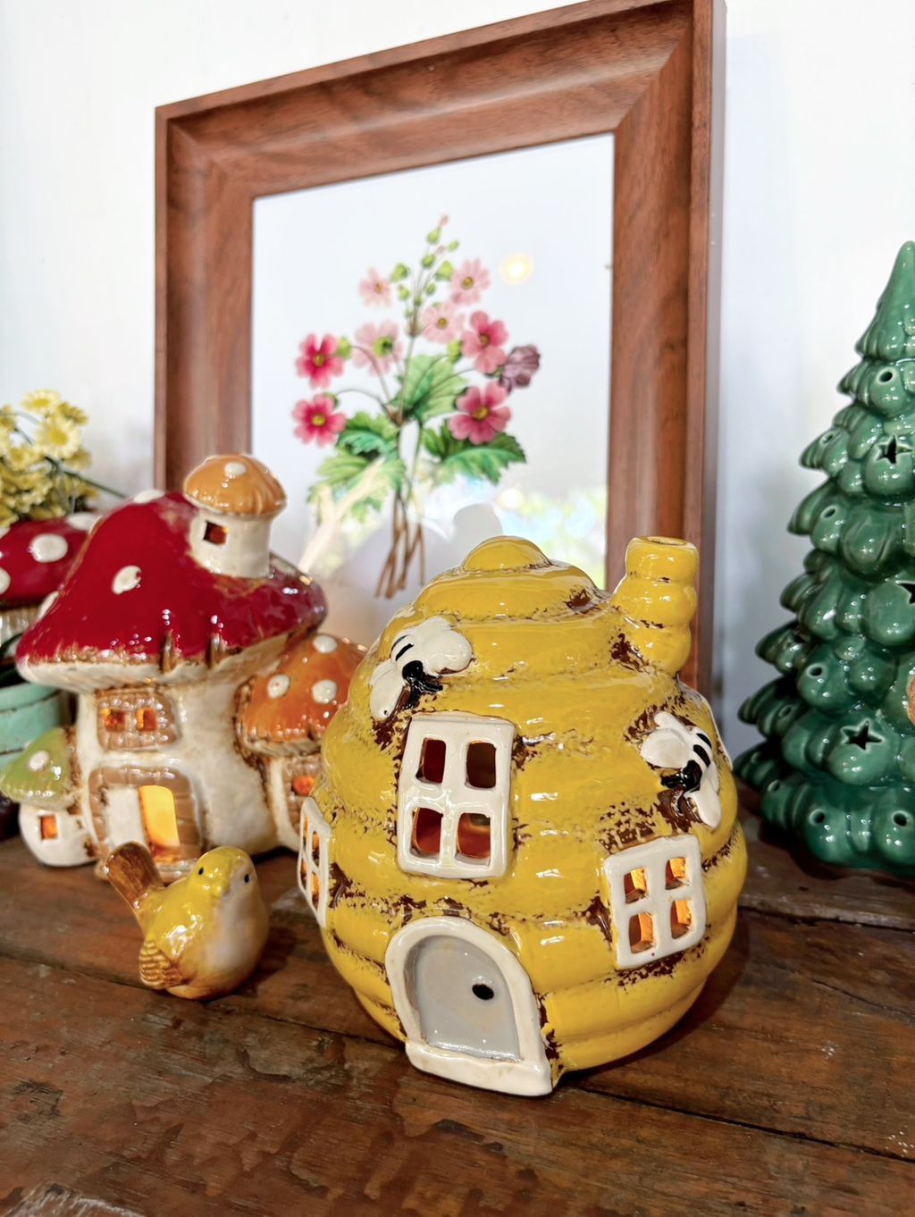 蘑菇屋/蜜蜂屋 丹麥小屋燭台 園藝擺飾 陶瓷房屋
