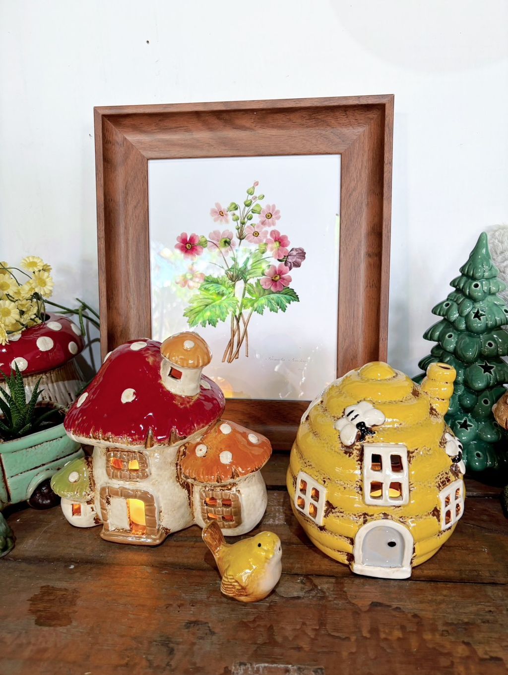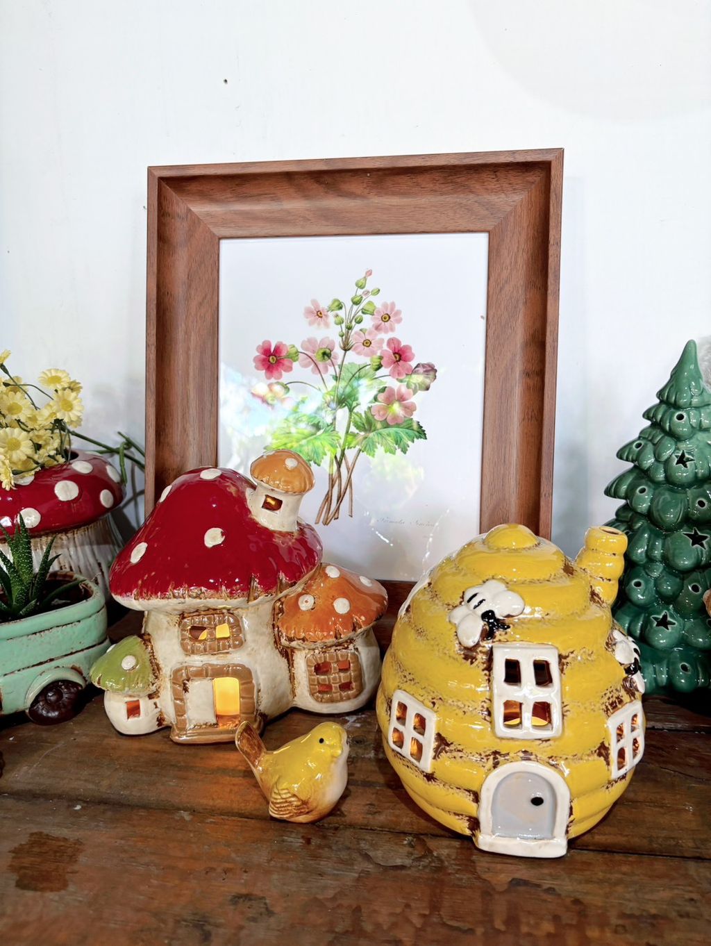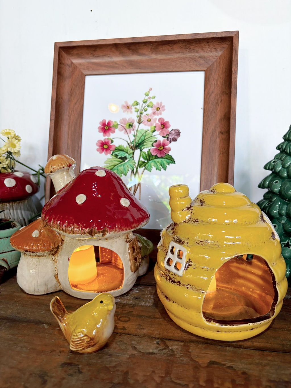 蘑菇屋/蜜蜂屋 丹麥小屋燭台 園藝擺飾 陶瓷房屋