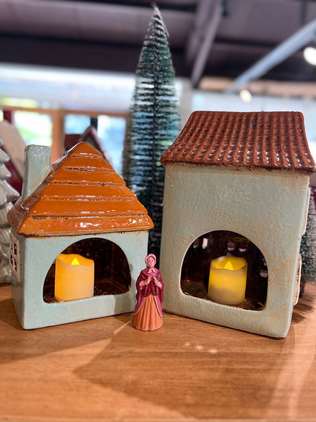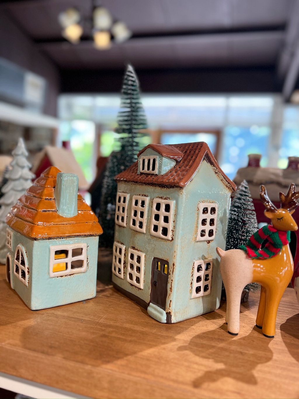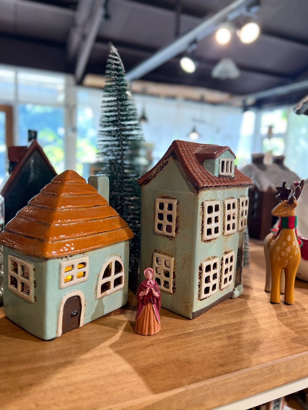 每款陶瓷房屋造型皆附贈電子蠟燭,夜晚點亮後彷彿一座微型溫暖小屋。