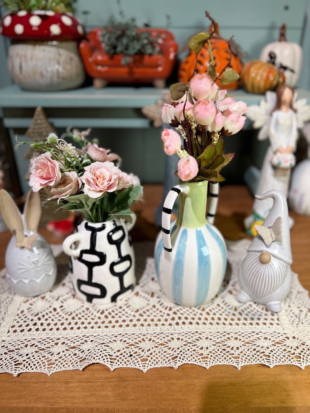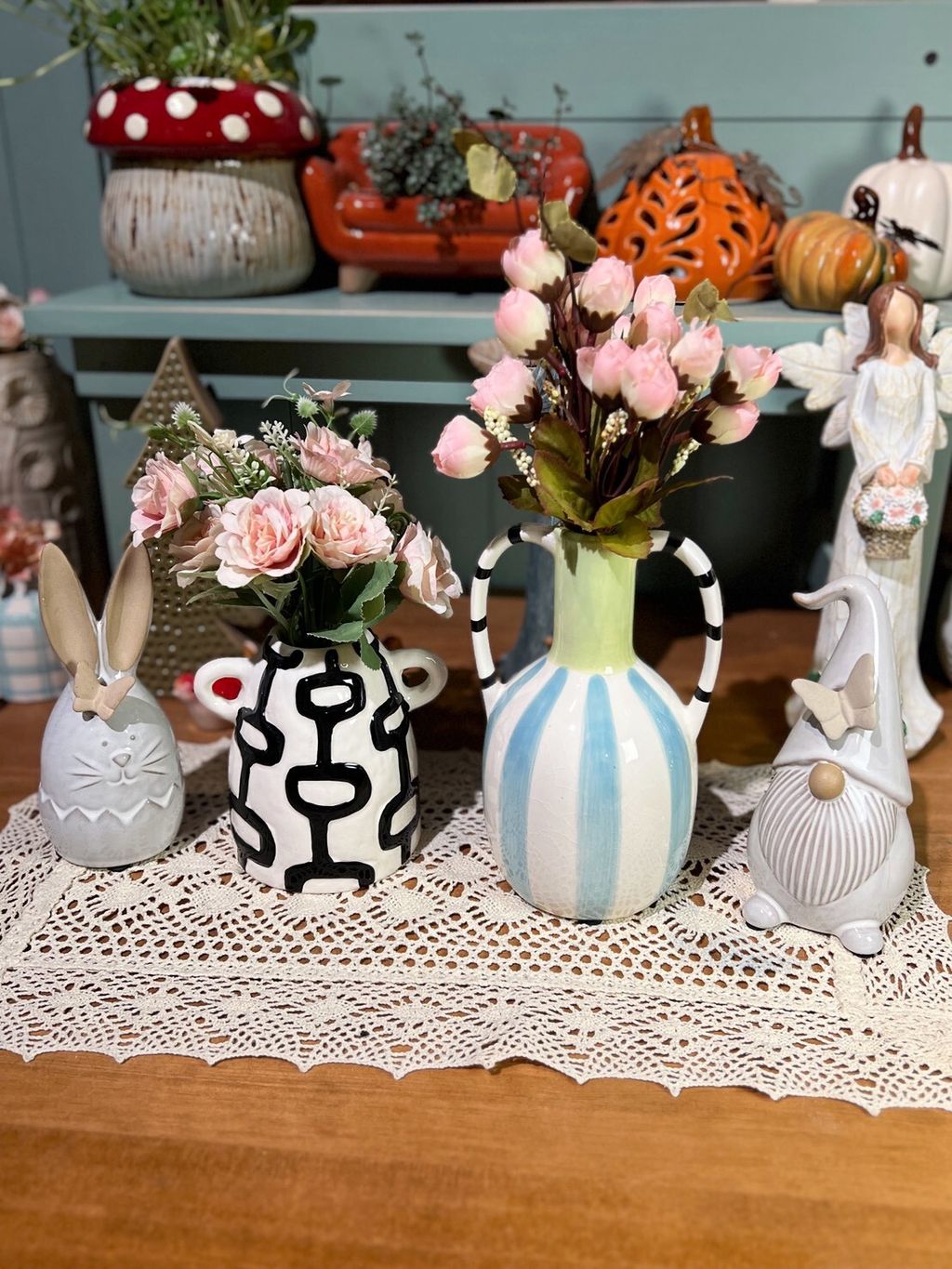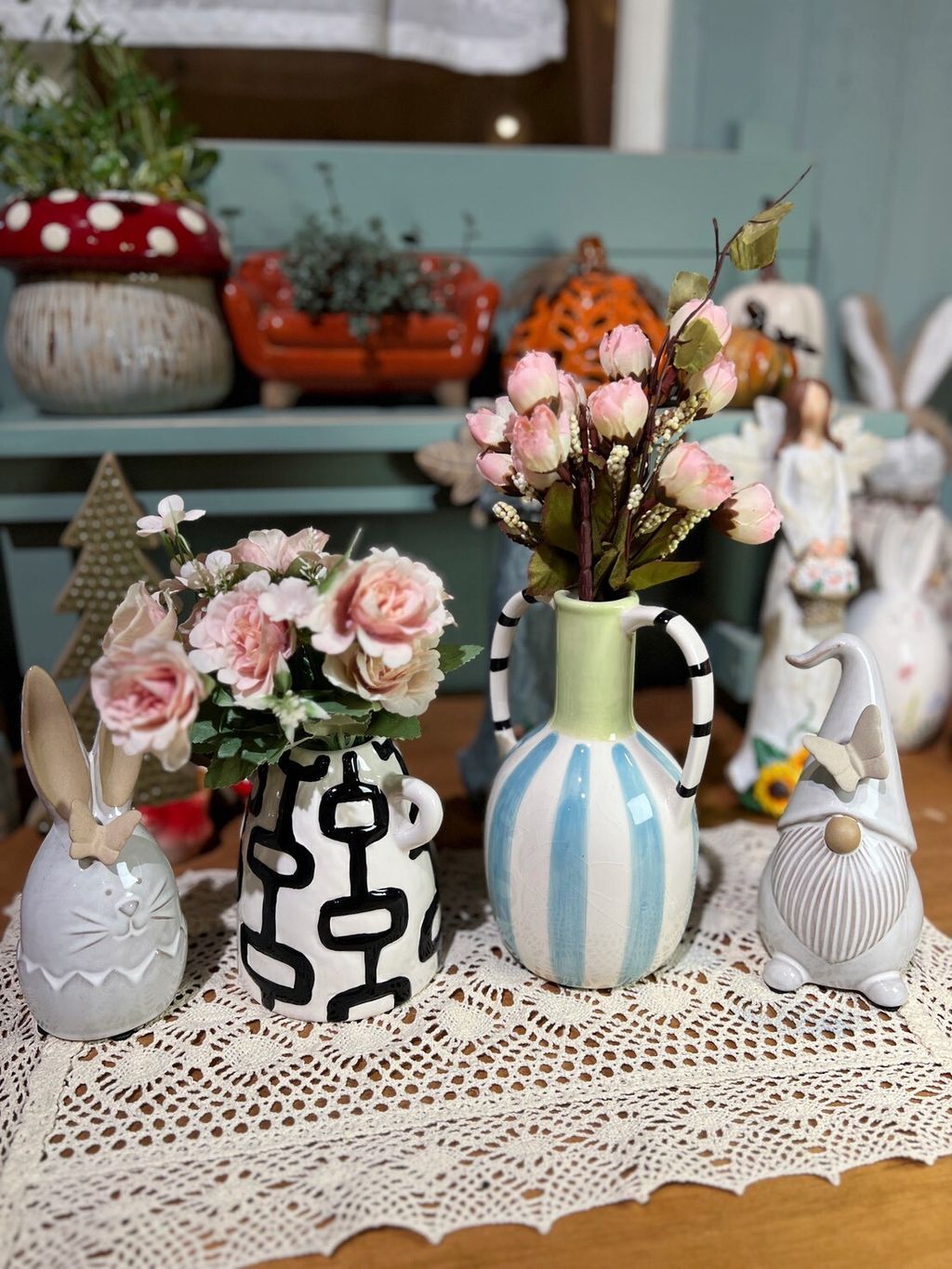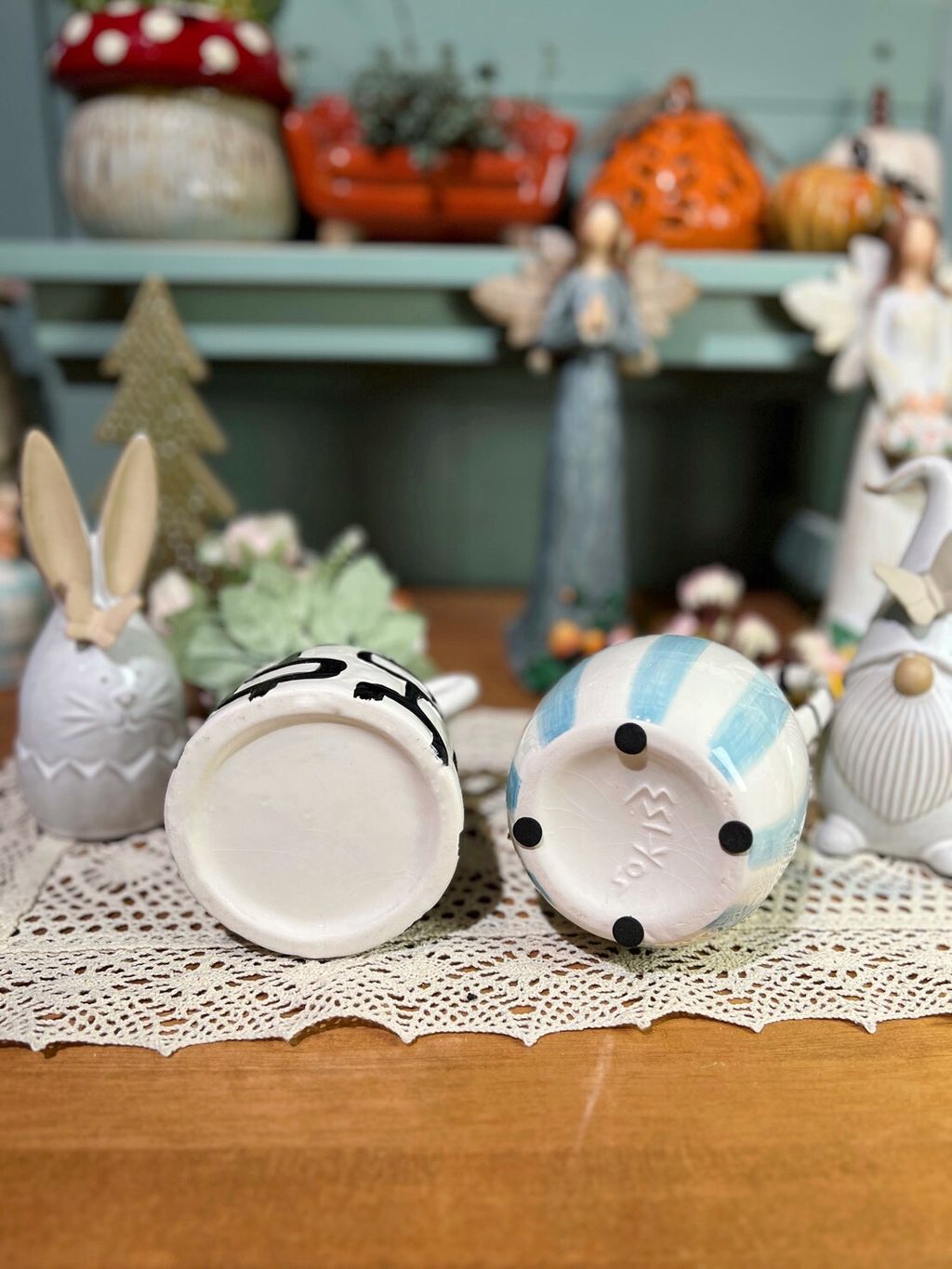 黑白圈圈提耳花瓶/條紋提把花瓶/粗陶擺飾系列(兔子/地精)