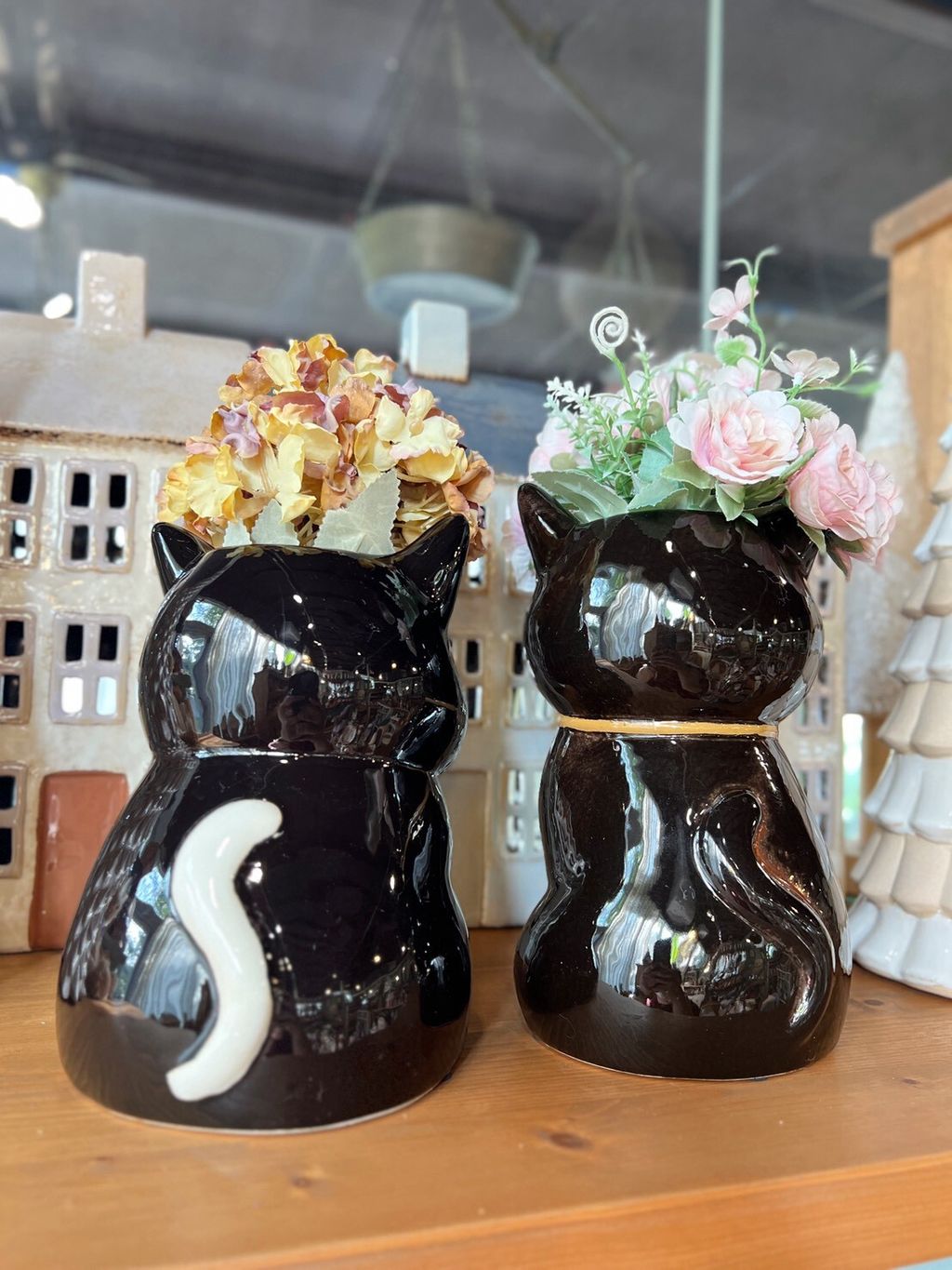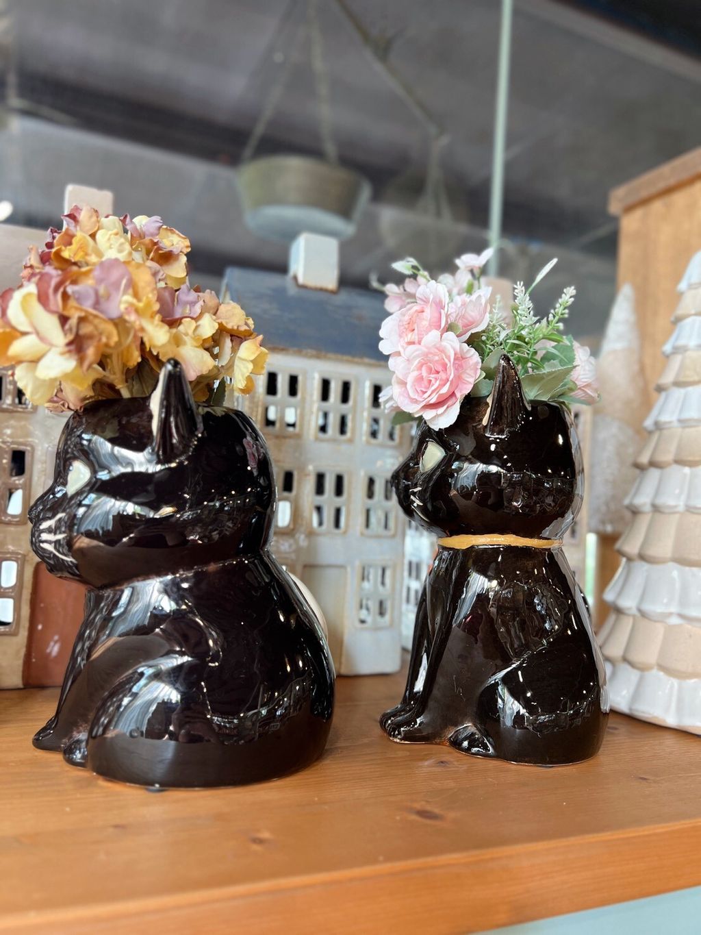 黑貓花器系列/禮物老人 丹麥小屋花器 陶瓷花器