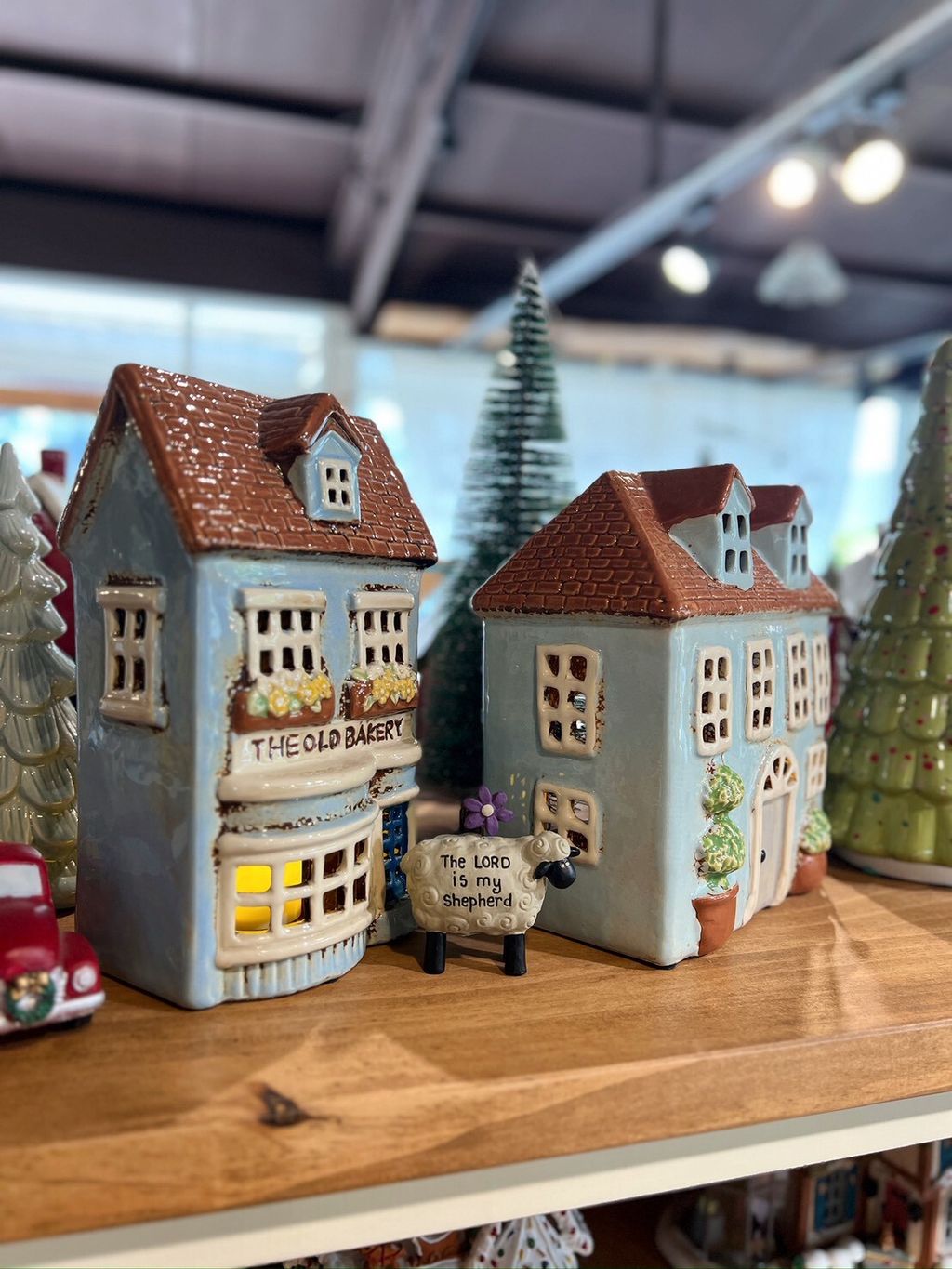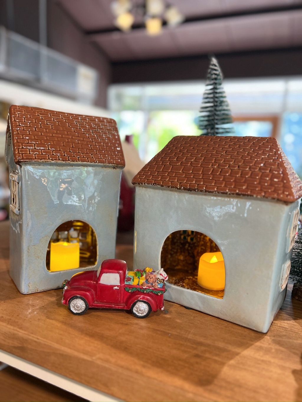 每款陶瓷房屋造型皆附贈電子蠟燭,夜晚點亮後彷彿一座微型溫暖小屋。