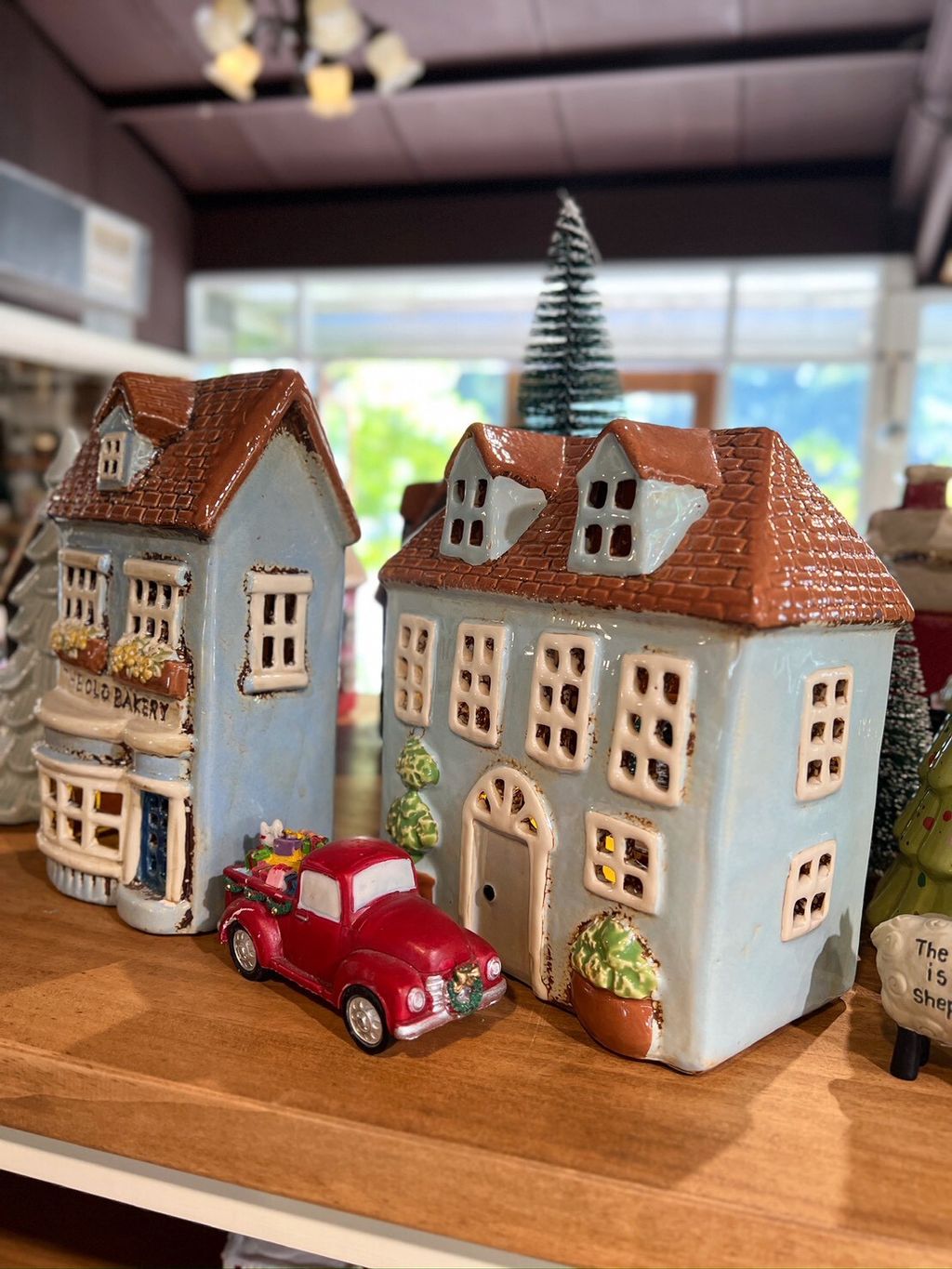 屋瓦藍屋系列(烘焙坊/小樹屋) 丹麥小屋燭台 陶瓷小屋